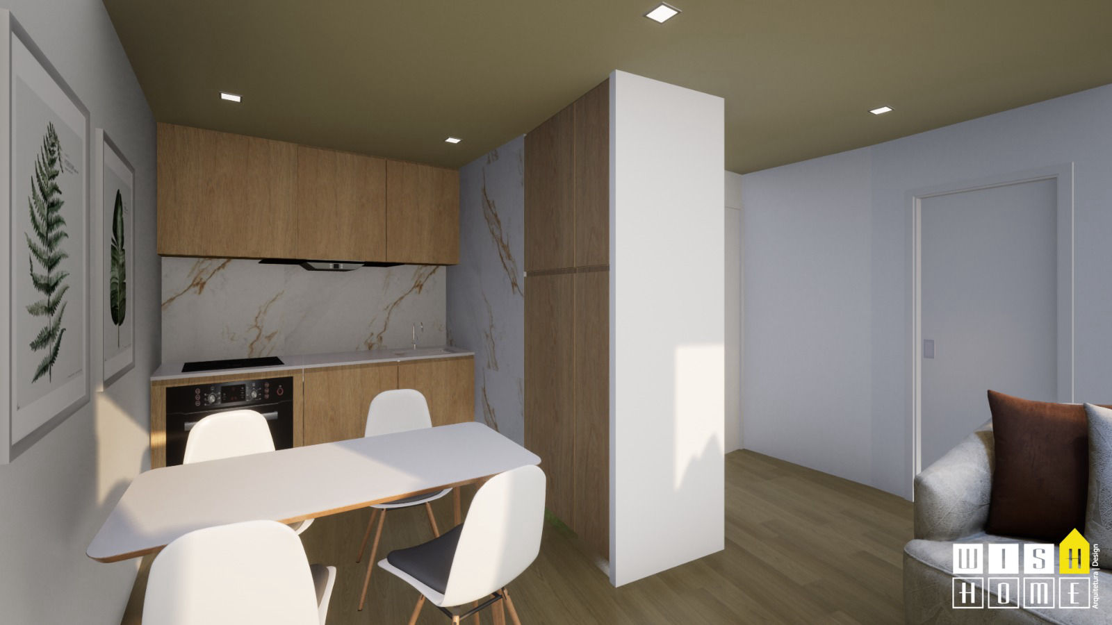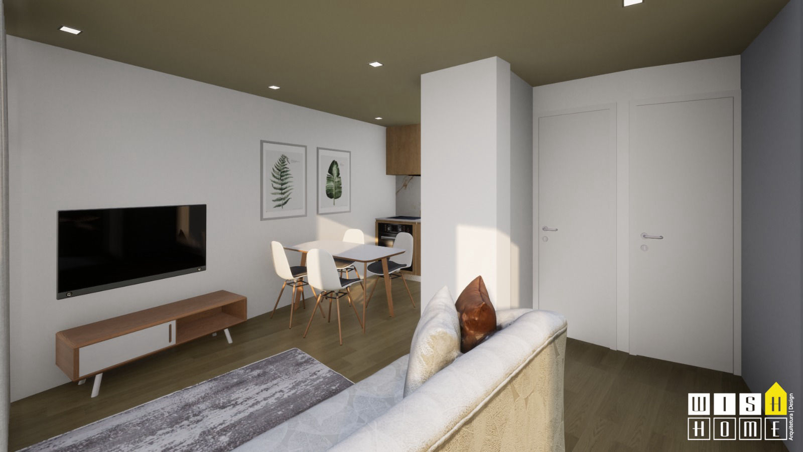 Os apartamentos têm cozinha e sala (open space), quarto e casa de banho.